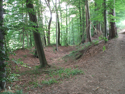 rechts: Hohlwegspuren auf dem Heerweg zwischen Gevelinghausen und Heringhausen